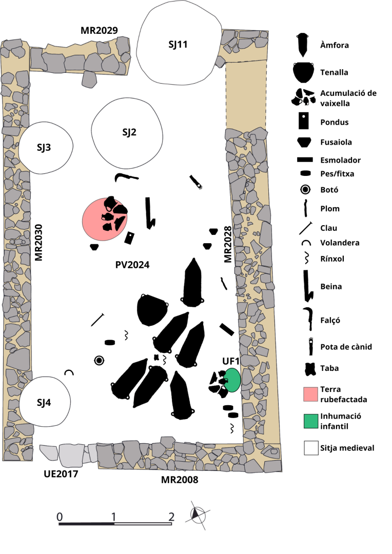 Imatge del recinte 1 amb tot la localització de tot l’escampall d’objectes que van quedar al abandonar-se